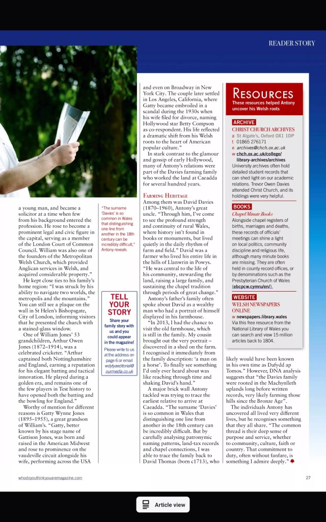 I’m enormously grateful to Who Do You Think You Are? magazine for the opportunity to share my research and to celebrate the enduring spirit of rural Wales and its people.
